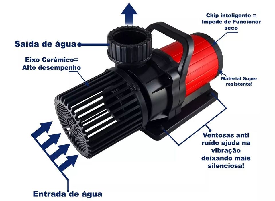 Perfeita para lagos, fontes, chafarizes, piscicultura e aquários.