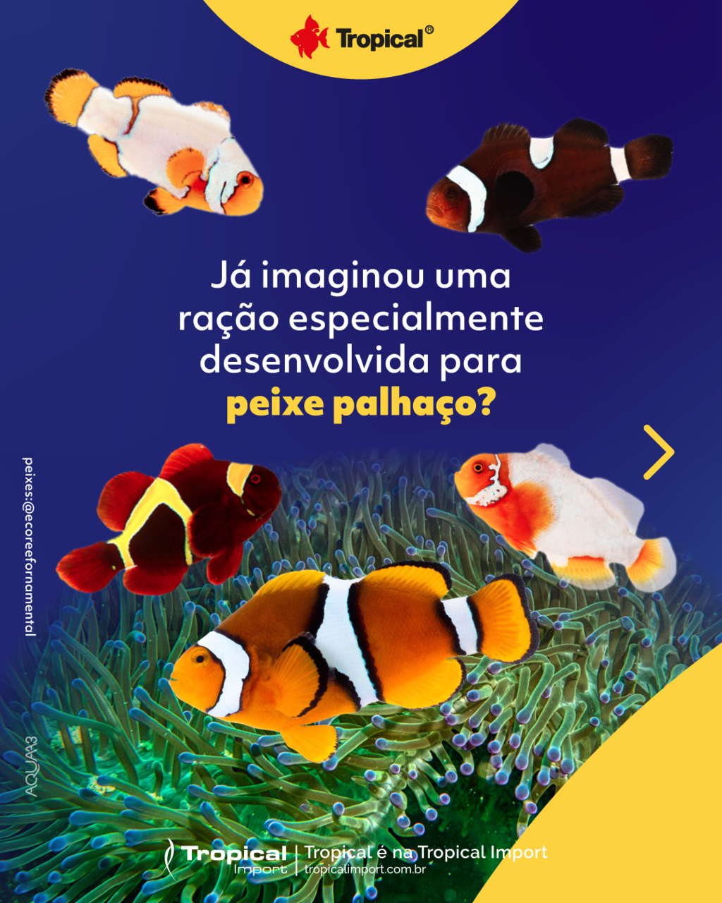 - Ração 3 em 1: alimenta peixe palhaços (jovens e adultos), anêmonas e invertebrados